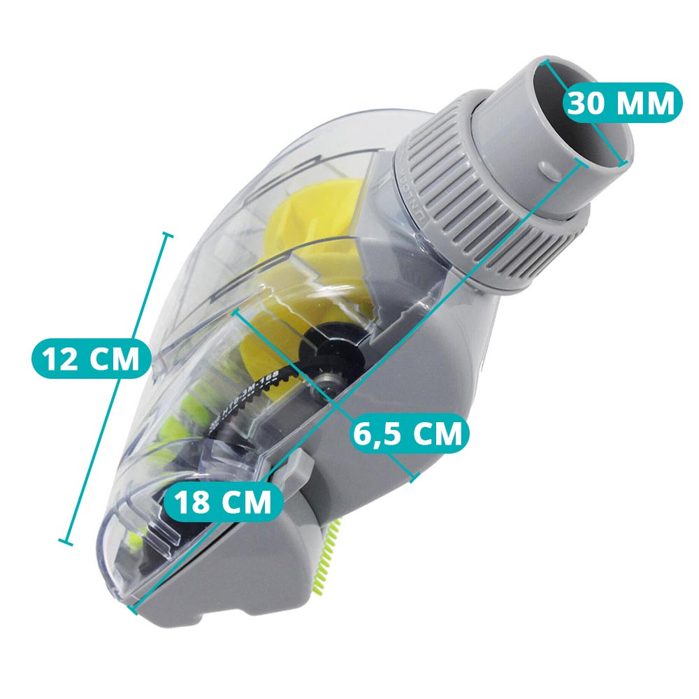 A fej kompatibilis a legtöbb porszívóval, csatlakozója 30 mm-es belső és 35 mm-es külső átmérővel rendelkezik. Átlátszó fedele leszedhető, így a tartály egyszerűen kiüríthető és tisztítható, biztosítva a higiénikus használatot.