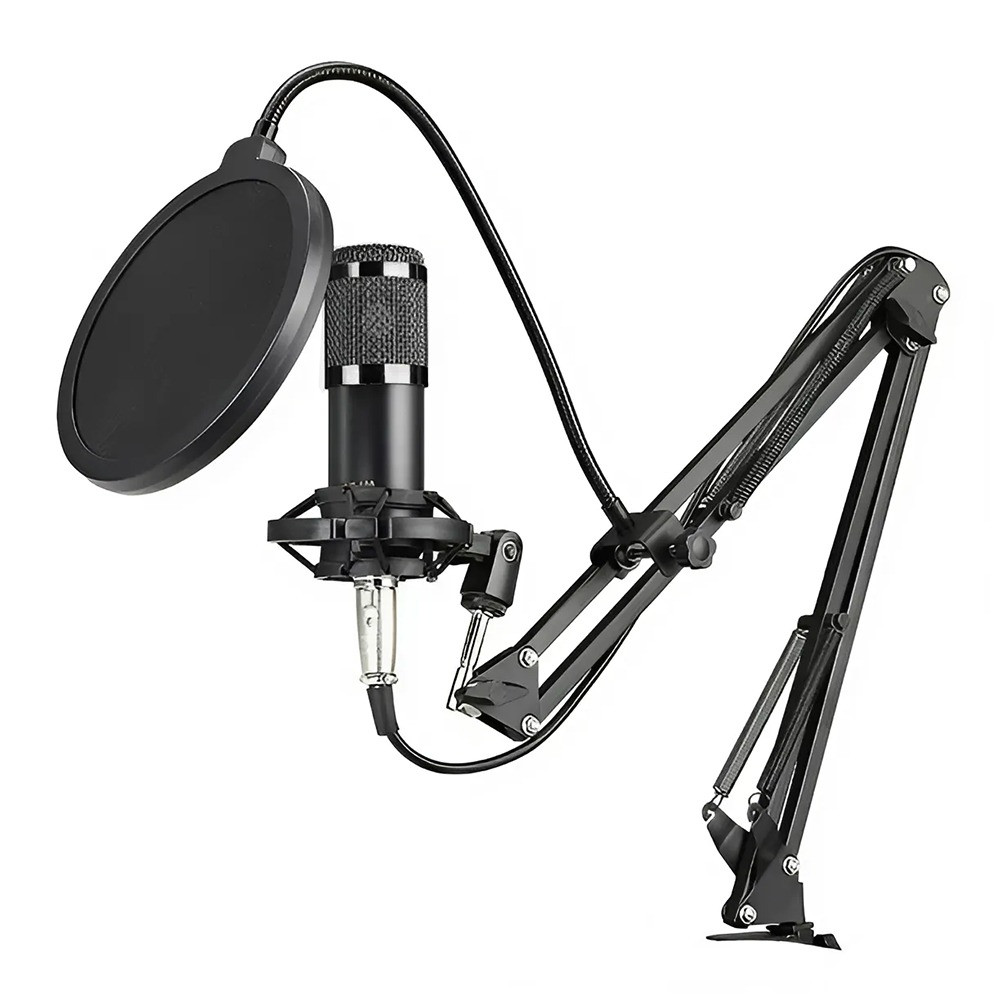 A mikrofonhoz mellékelt tartozékok – többek között popfilter, szélfogó, shock mount és USB hangkártya – biztosítják a zörejmentes, stabil felvételt. Az állítható fém kar könnyen rögzíthető az asztalra, így ergonomikusan beállítható a legjobb hangzás érdekében.