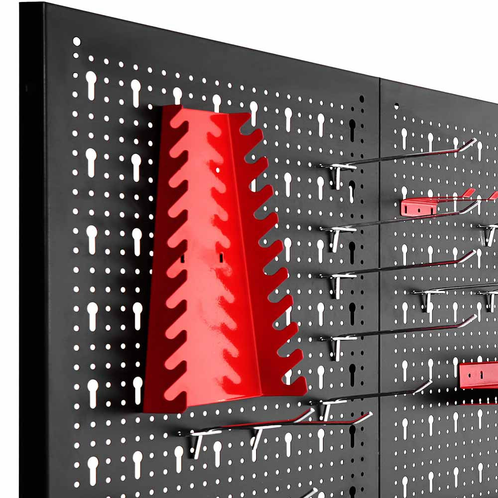 A szerszámos fal három részből áll, melyekre könnyedén, igényeidnek megfelelően felrakhatod a különböző méretű kampókat és rekeszeket, így alkalmas többek között csavarhúzók, fogók, fúrók, csavarkulcsok tárolására.