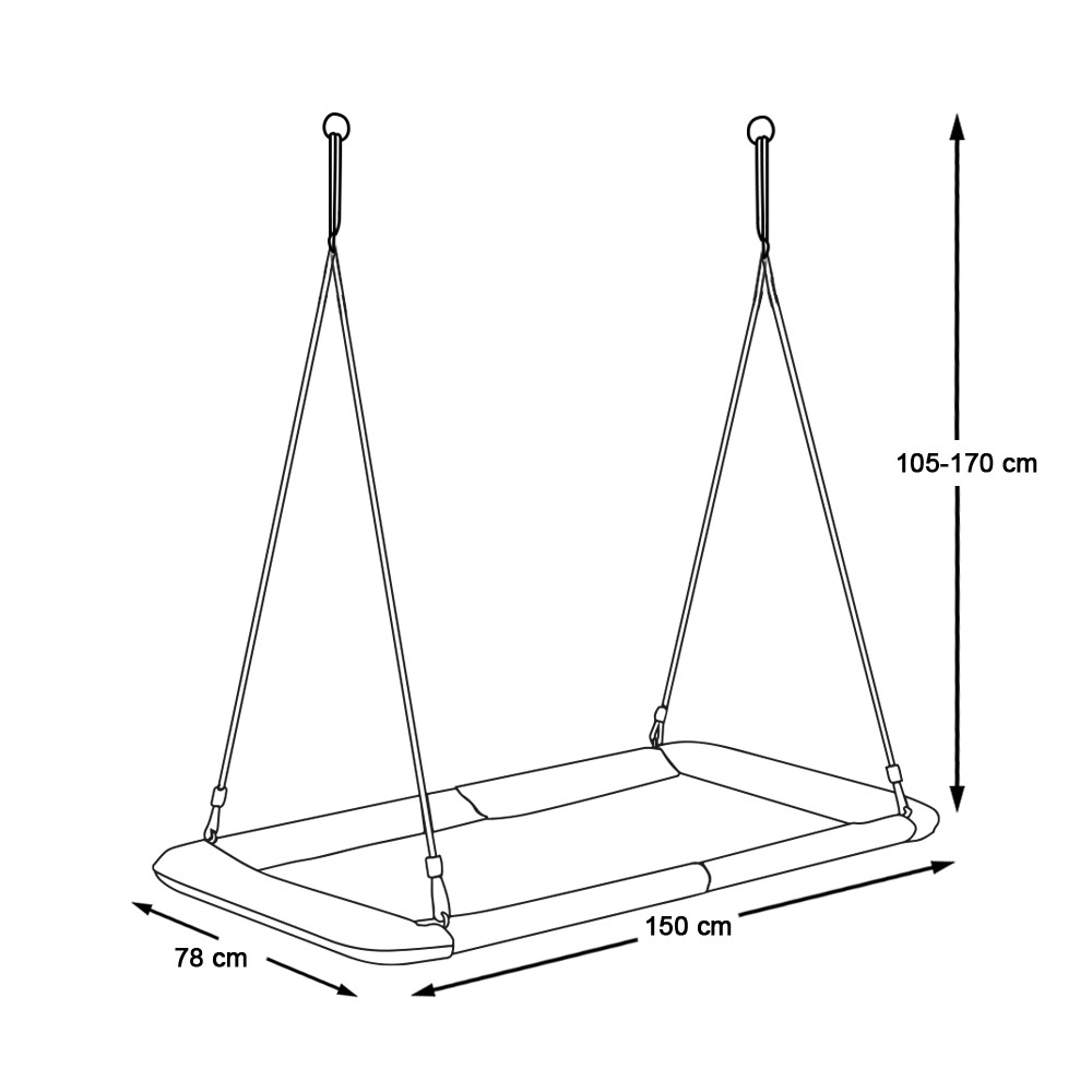 Akár a kertben, akár egy nagyobb beltéri helyiségben is felakasztható. A kötél hosszúsága 105-170 cm között állítható, így igény szerint könnyedén testre szabható.