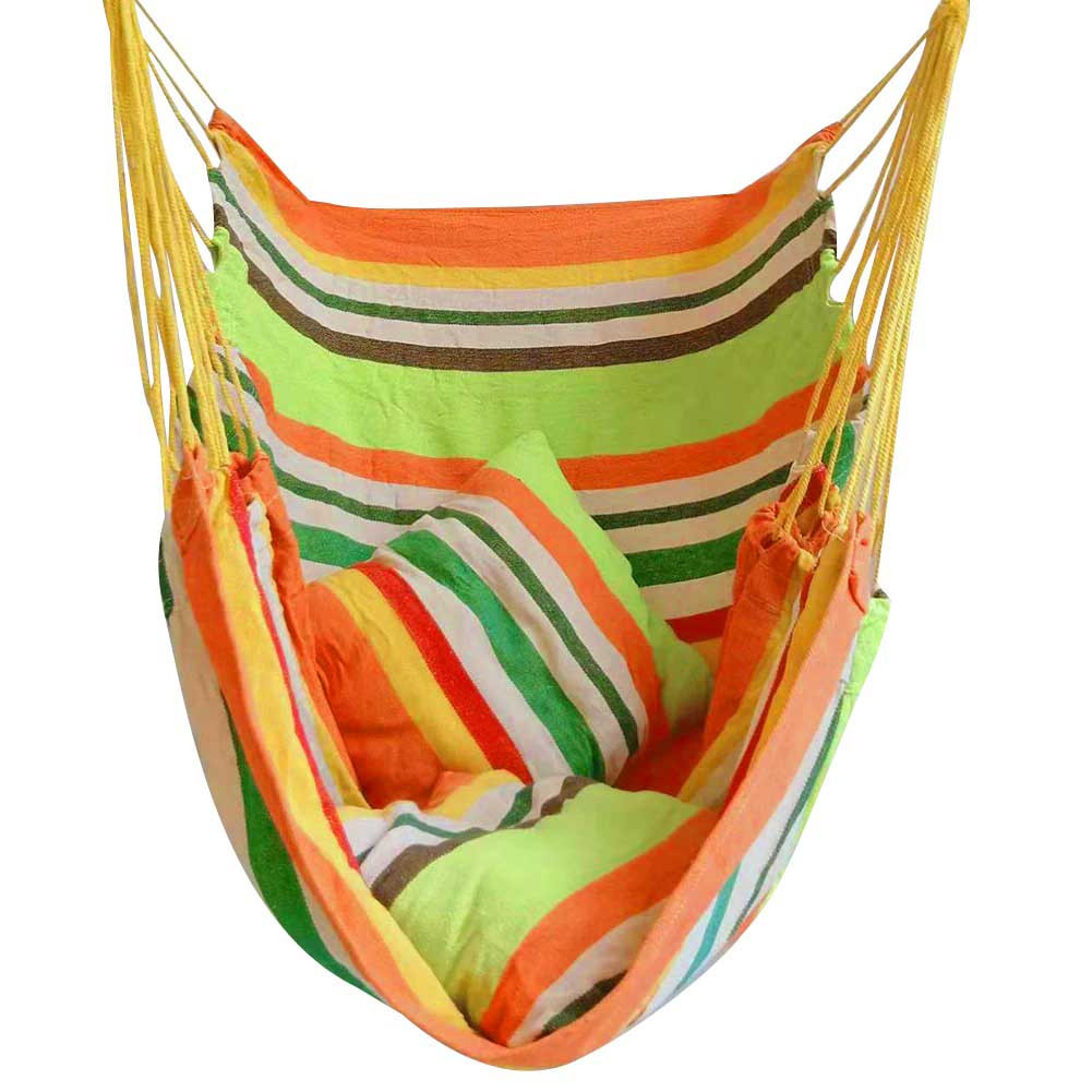 Az ülőfelület és a háttámasz is párnázott, így hosszabb időn át is kényelmes marad. A masszív, merevített felső rész stabil tartást ad, az erős vászon és kötelek pedig 120 kg-os teherbírásra is alkalmassá teszik a függőszéket.
