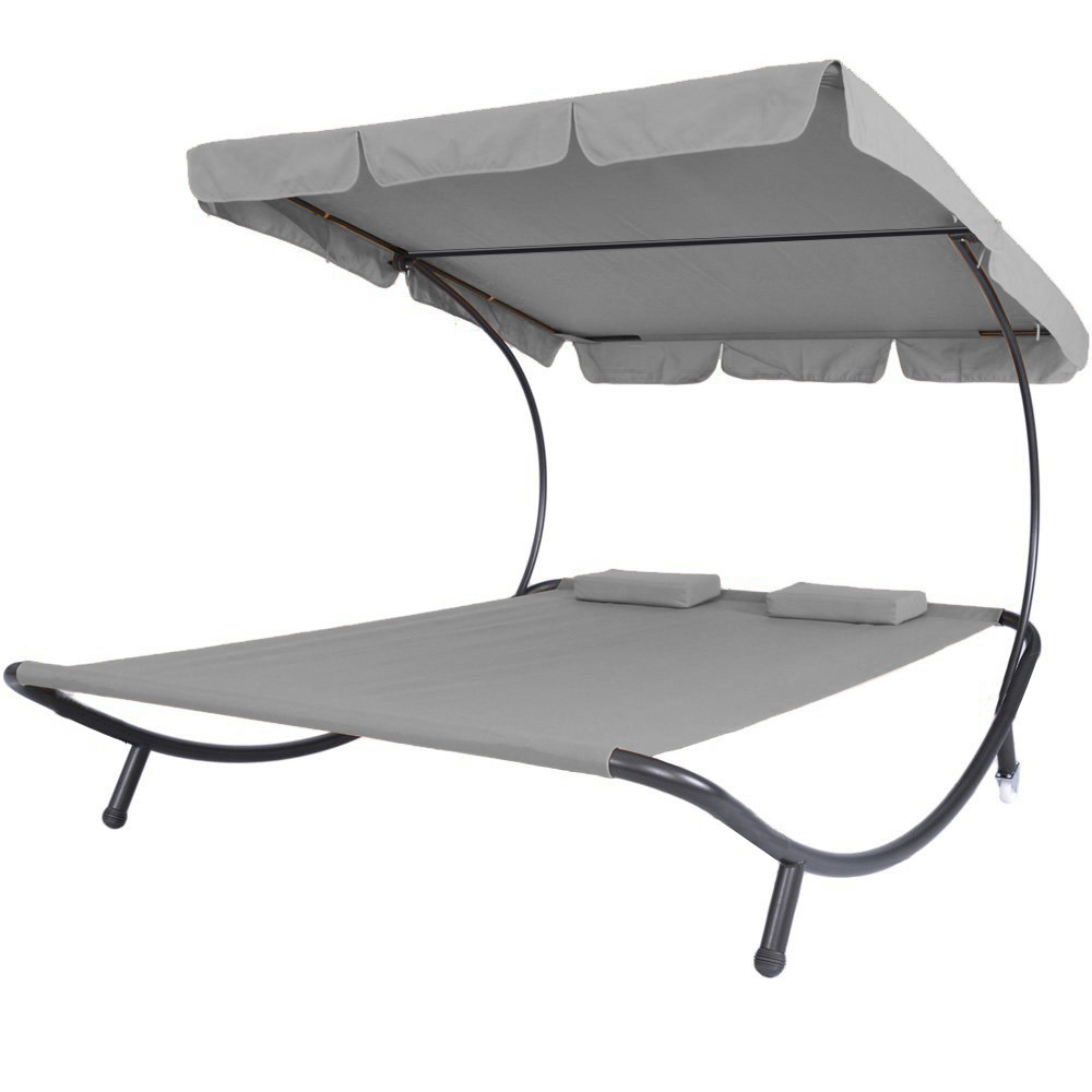 Kétszemélyes napozóágy árnyékolóval-szürke