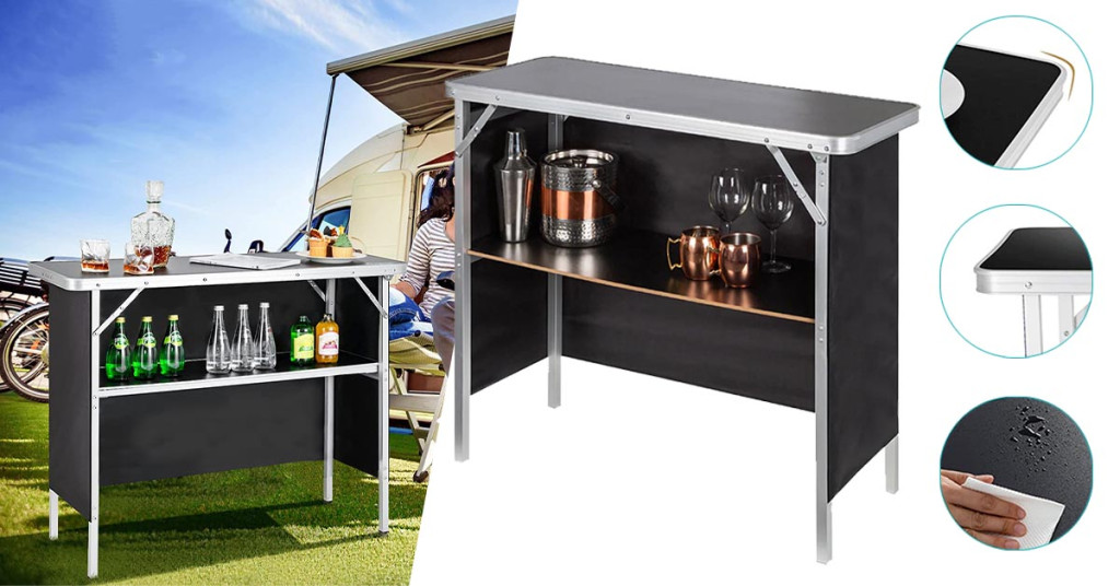 Vidd magaddal az igazi koktélbárok érzését és légy a kerti partik királya! Könnyen összecsukható és hordtáskájában magaddal viheted a barátaidhoz, nyaralásra vagy kempingezésre. Kül-és beltéri használatra egyaránt használható. Oldalsó takaró fala tépőzárral ellátott és levehető, így könnyen tisztítható és esztétikusan eltakarja az alsó polcon tárolt italokat és kiegészítőket. Maximális teherbírása 30 kg.