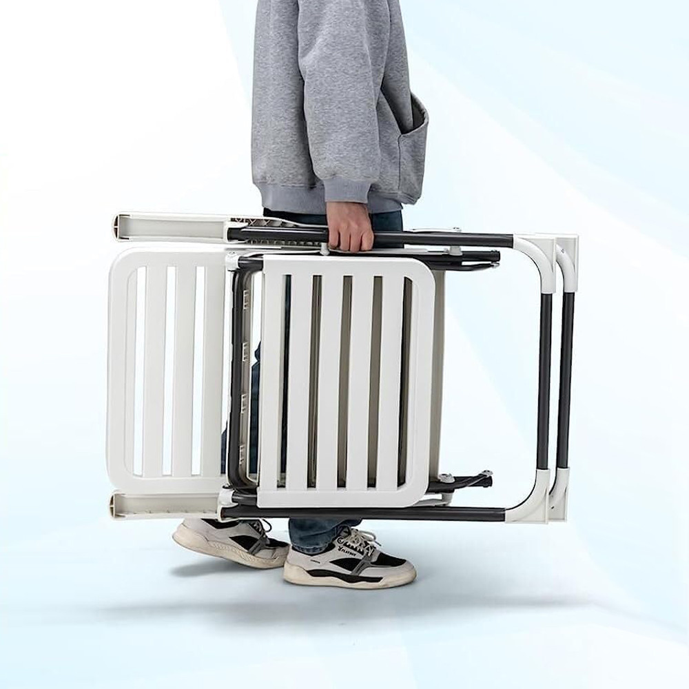 Használaton kívül a napozóágy egy mozdulattal összecsukható, így helytakarékosan tárolható akár a garázsban, akár az autó csomagtartójában. Kompakt mérete miatt tökéletes választás utazáshoz, kempingezéshez is.