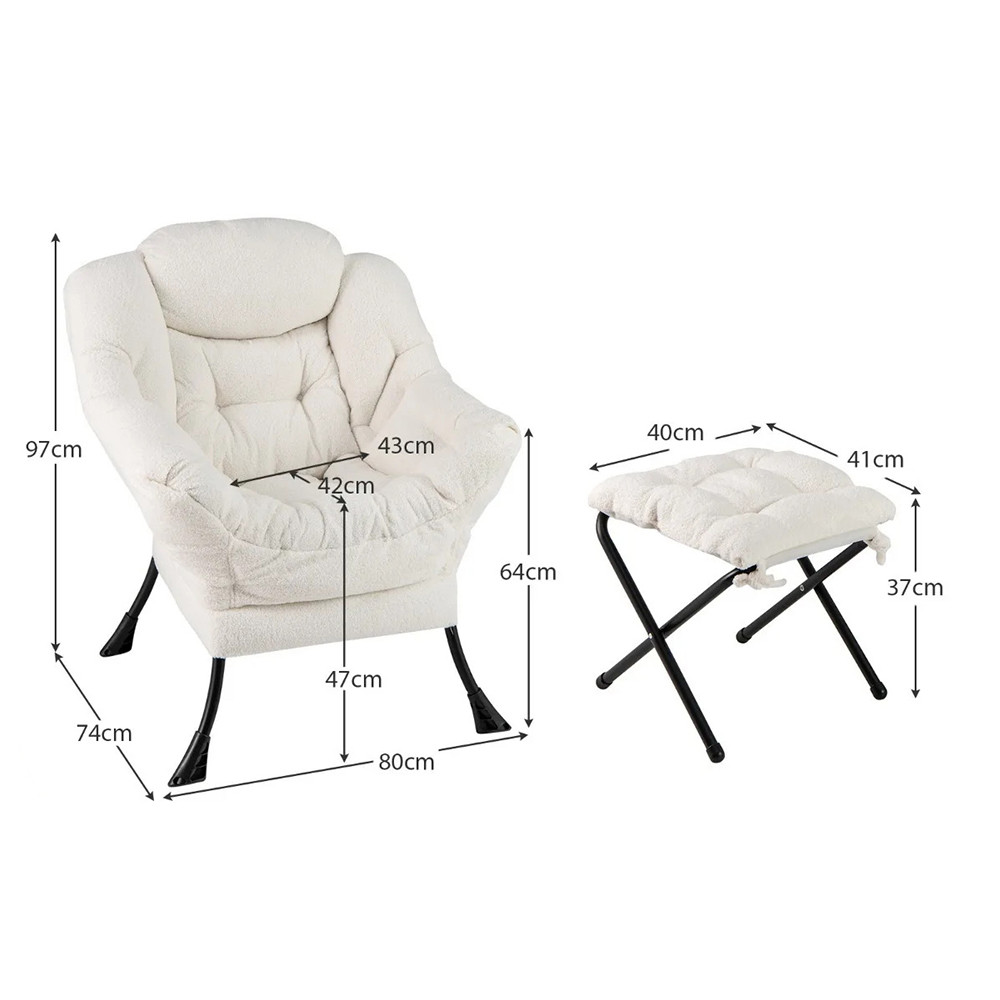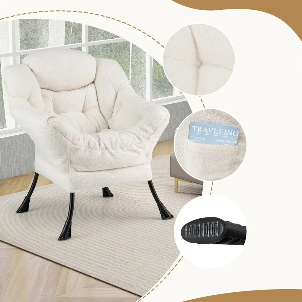 A sherpa szövet huzat kellemes tapintású és elegáns megjelenést ad, míg a rozsdamentes fémcső vázas kialakítás stabilitást garantál. A PP pamut töltet puhaságot nyújt, az alján elhelyezett csúszásgátló talpak pedig megóvják a padlót a karcolásoktól.