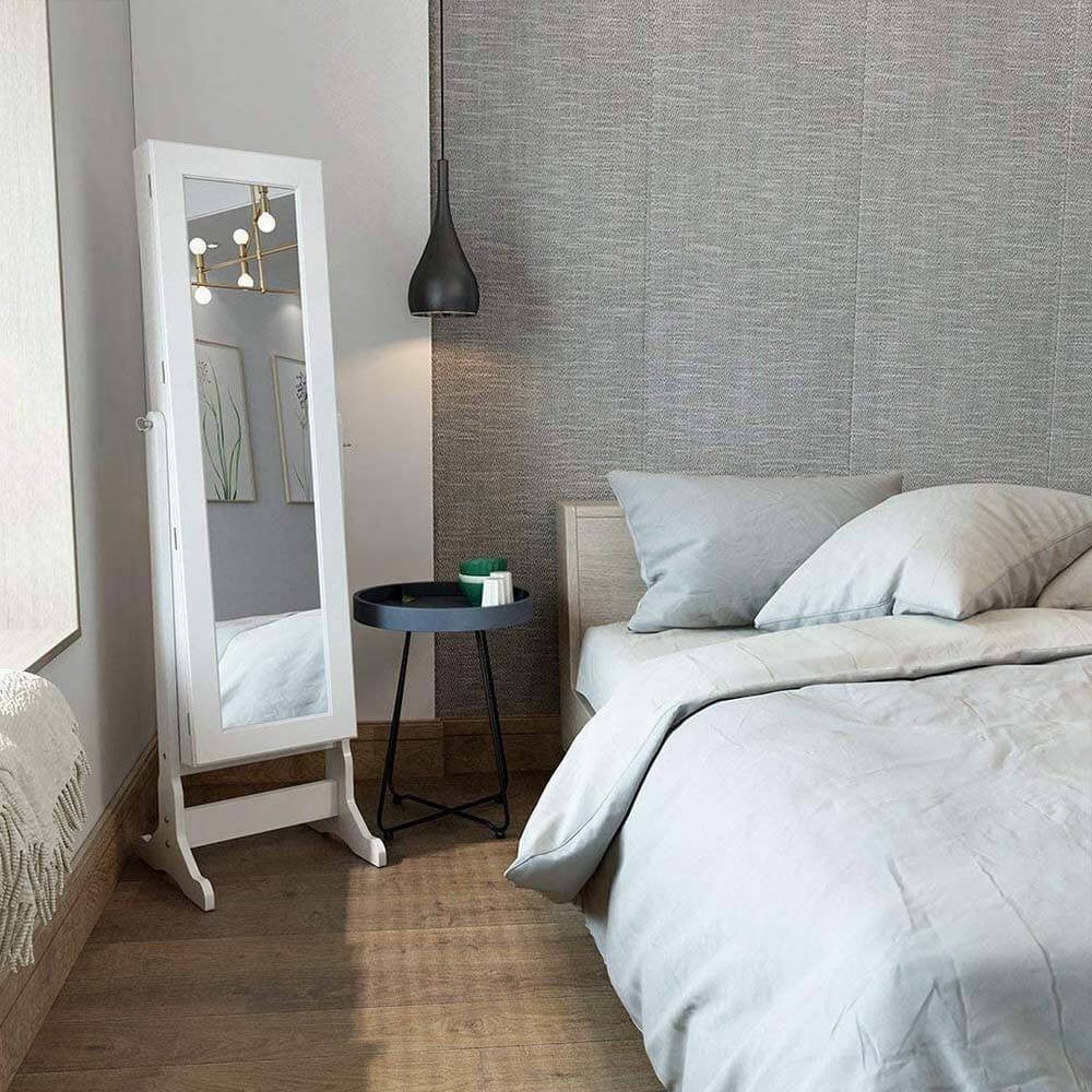 A szekrény belsejében 3 × 9 db akasztó biztosítja a nyakláncok rendezettségét, emellett külön rekeszek állnak rendelkezésre gyűrűk, karkötők és fülbevalók számára. A puha plüss belső borítás óvja az ékszereket a karcolódástól és egy helyre rendszerezi a legfontosabb kiegészítőket.